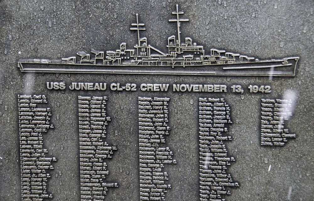 Six-hundred and 87 sailors, including the five Sullivan brothers, died when the light cruiser U.S.S. Juneau was sunk during the naval battle of Guadalcanal.