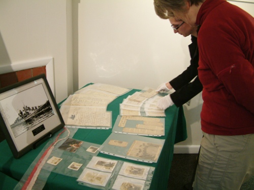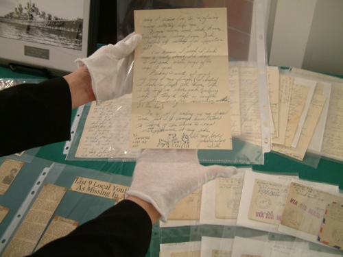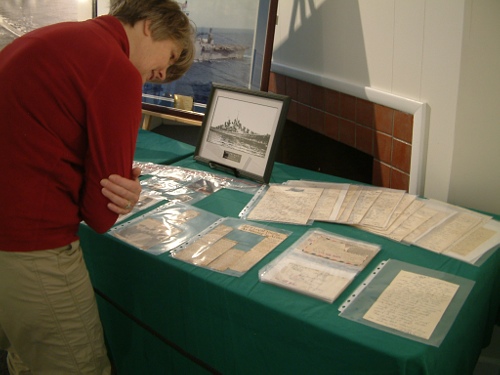 Included in the slideshow below are pictures from Saturday’s event at the Juneau-Douglas City Museum that included display and reading of recently acquired letters originally sent by Seaman William George Meeker from aboard the U.S.S. Juneau to Winifred Blohm in Harrison, New Jersey.