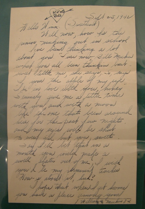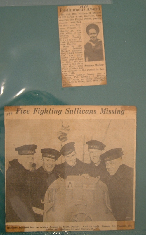 What makes this anniversary of the Juneau’s sinking unique is the recent acquisition of letters originally sent by a sailor aboard the cruiser. Seaman William Meeker, sent seventeen letters to Winifred Blohm, his next door neighbor and good friend in New Jersey. The last one was sent exactly a week before the U.S.S. Juneau’s sinking.