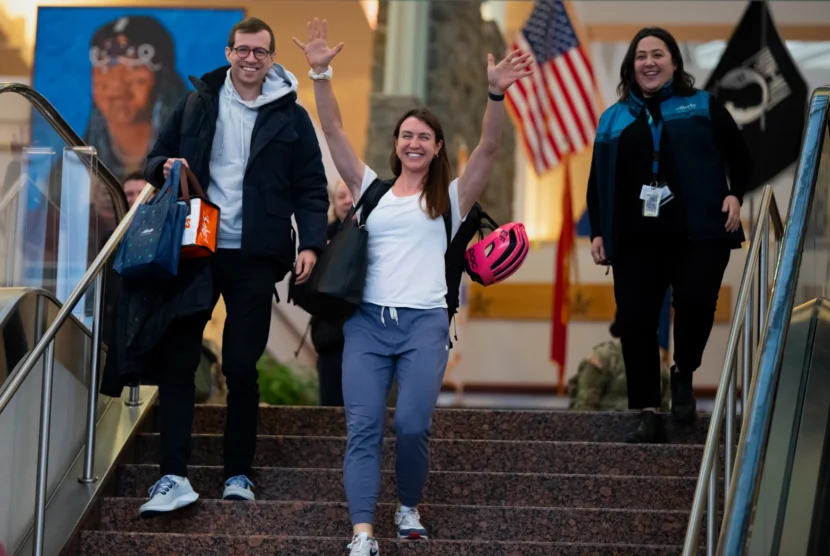 Homer’s Kristen Faulkner returned to Alaska Friday for the first time since winning two gold medals at the Paris Olympics last summer. She arrived at Ted Stevens Anchorage International Airport, greeted by a small contingent of fans and family chanting “U-S-A! U-S-A!” as she descended the airport steps.