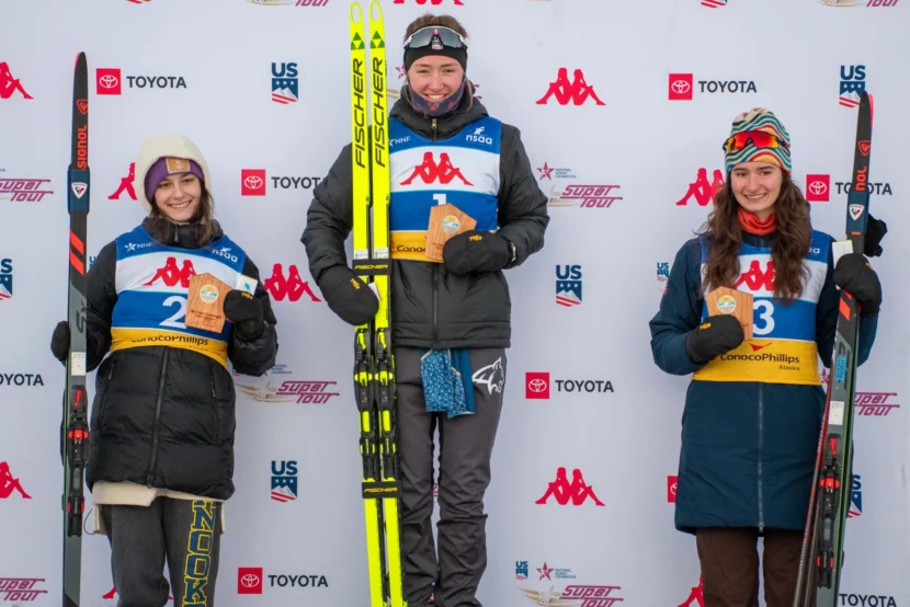 Women’s national podium at the 10k individual start 10k freestyle, U.S. National Championships, Kincaid Park, Anchorage, Alaska. (Scott Broadwell)