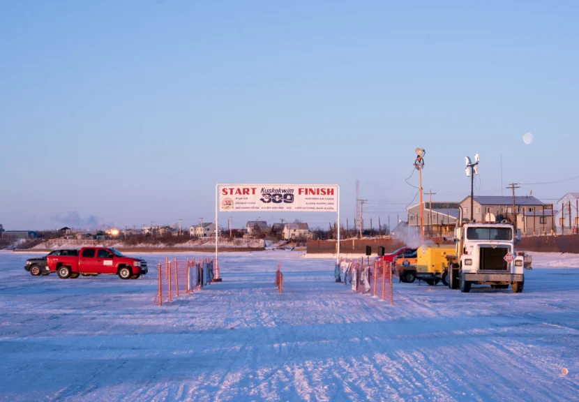 The finish line of the 45th annual Kuskokwim 300. (MaryCait Dolan/KYUK)
