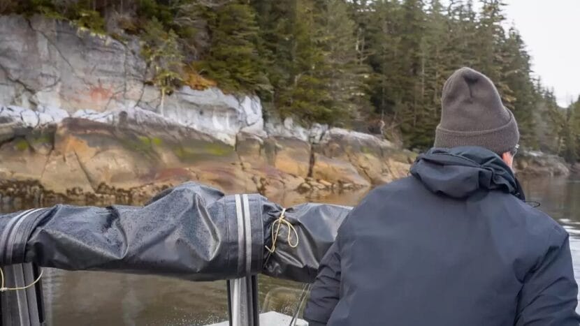 It’s docked near a rising sun petroglyph painted onto the rocks above the river. Tazia’s grandfather Louie Wagner says that sun is thousands of years old and is a family crest of their ancestors, the Tlingit brown bear clan, or Teikweidí.