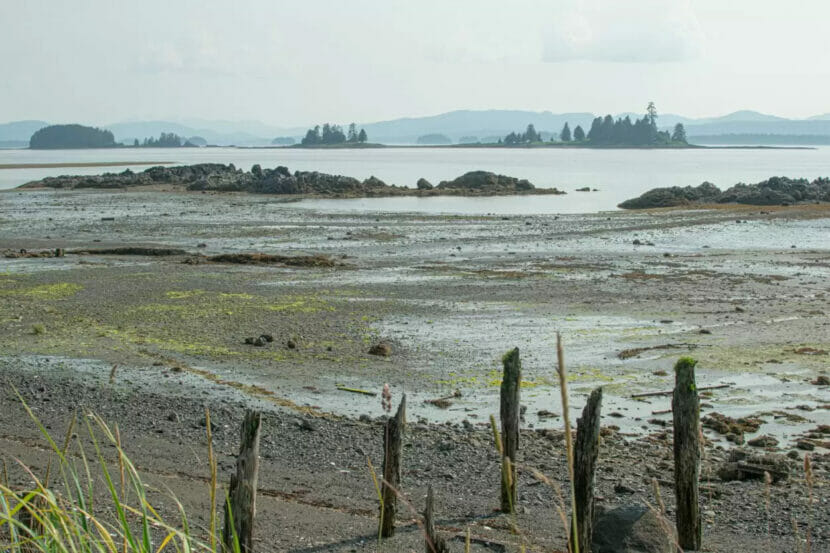 Kake’s northern shore, close to where volunteers laid the foundation of the community clam garden. (Shelby Herbert/KFSK)