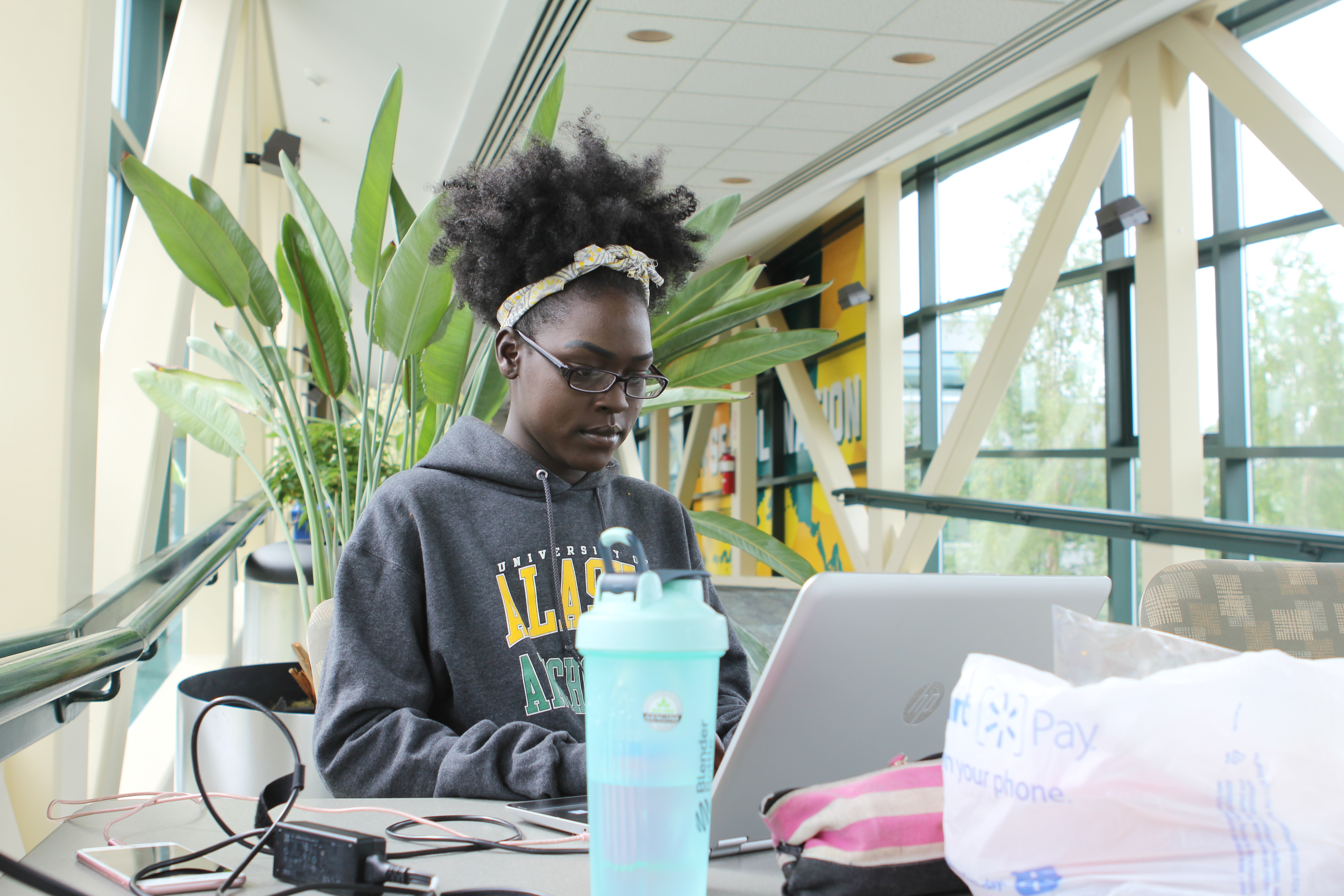 Nyariak Kuany studies for one of her summer final exams at the University of Alaska Anchorage in July. Kuany receives both the Alaska Education Grant and the Alaska Performance Scholarship. (Erin McKinstry/Alaska Public Media)