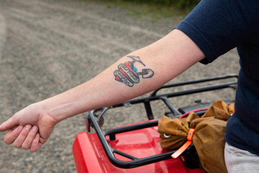 Rebecca Wilmarth’s father is Dick Wilmarth, the very first Iditarod champion. He also loved Red Devil and passed that on to his daughter. “Gold miner’s daughter” is tattooed on Rebecca Wilmarth’s right arm.